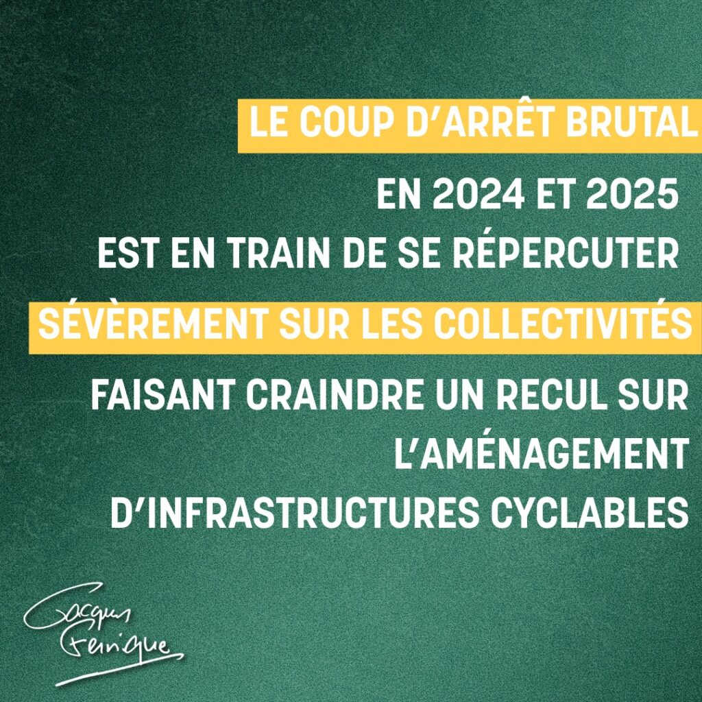 Le budget pour 2026 ne contient aucun nouveau crédit pour le Plan vélo. L’enjeu est donc que l’Etat fasse défaut aux collectivités en attente de paiement ! Stopper net une politique publique n’est pas sans conséquence. Cela risque de mettre un coup d’arrêt à des plans pluriannuels à tous les échelons des collectivités.
