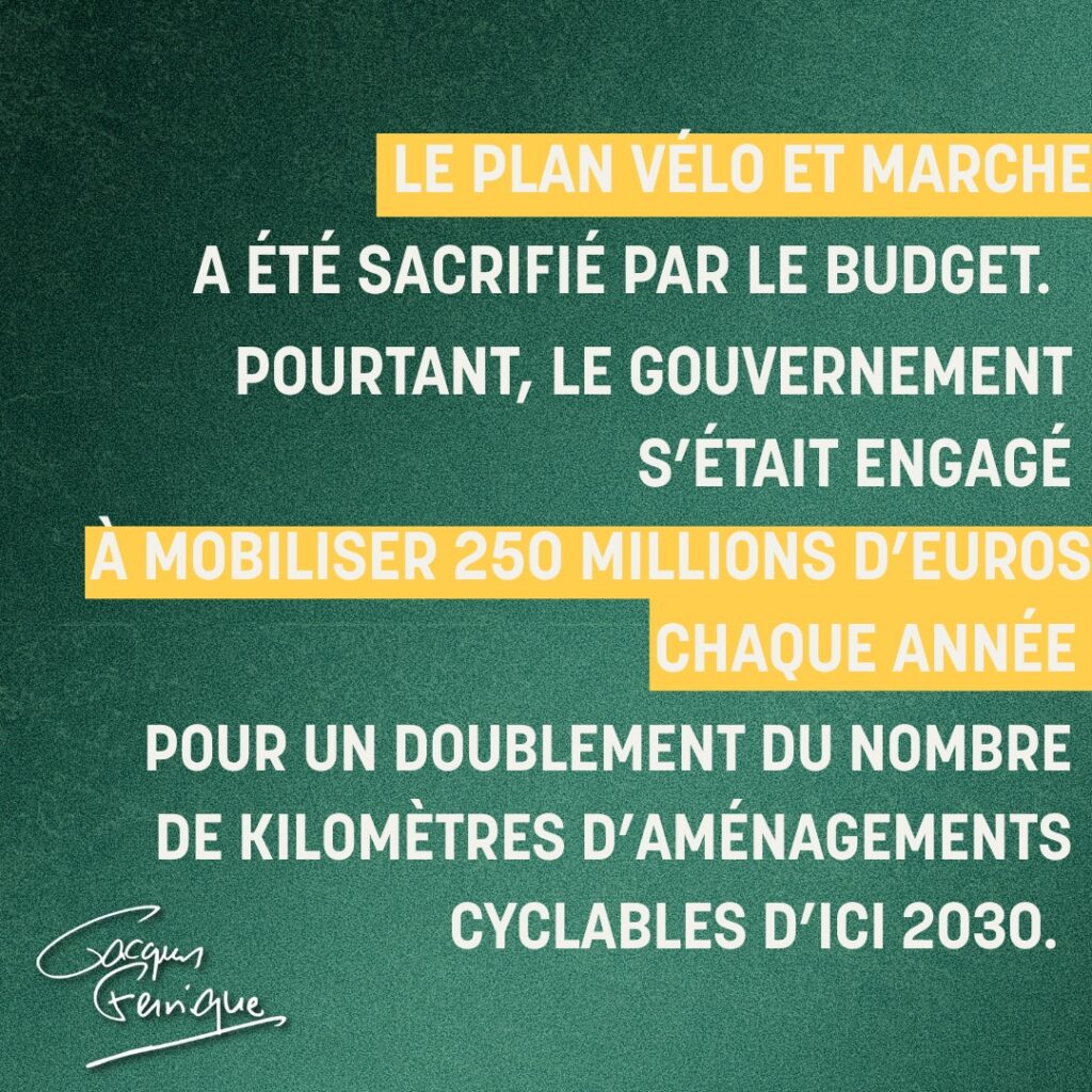 On ne demande pas un relèvement du Plan vélo au niveau auquel l’Etat s’était engagé, mais simplement un signal pour soutenir les collectivités, les 50 millions d’euros arrachés, bien qu’insuffisants, aideront à poursuivre de nombreux projets engagés.