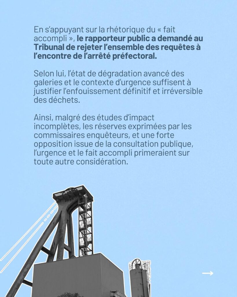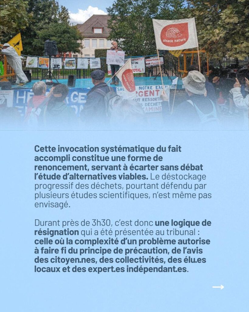 Audience au Tribunal administratif de Strasbourg sur Stocamine : l’État persiste dans une voie sans retour, malgré l’existence d’alternatives au confinement.
